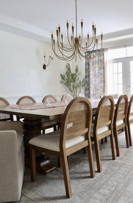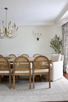 I love our new dining chairs. I needed an affordable stylish options for our dining room table and I needed 10 chairs total. These chairs match my dining table perfectly and provide an elevated traditional style for my space. The charis are a great height and have a firm cuishioned seat (but not so firm it is uncomfortable). The seat itself is much wider than I expected, in a good way! Assembly was also quite easy. My only feedback would be that I can foresee the ratan snagging some delicate fabrics in the future, however that hasnt happened yet. I'm looking forward to showing off our new chairs at Christmas this year!