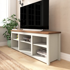 Product Name: Merrick Lane 6 Cubby 65" TV Stand for up to 80" TV's, White Finish with Walnut Top