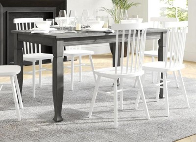 Forward trending style paired with long lasting durability make this 60" solid wood dining table, with seating for 6, a must have for the modern household. 3 inch sculpted wooden legs support the sturdy 3/4” thick solid wood top boasting a water resistant finish while the triple grooved apron adds subtle flair that is sure to be noticed. Capable of holding up to 300 lbs. static weight and floor protector glides this wooden dining table is ideal for your space. Assembly is achieved in under 30 minutes with the included materials and a dry cloth keeps your new table looking its best.
