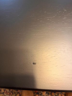 [This review was collected as part of a promotion.] The table came very quickly. It is solid wood and very sturdy. I love the color and design. It was very easy to assemble and looks great in the dinning room. It could comfortable sit 6 people or 4 people without it looking too big. I’m not sure if these dents are from shipping or the manufacture but there are a few small marks that can be easily covered up with a tablecloth.