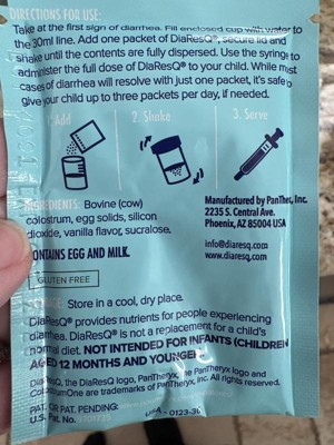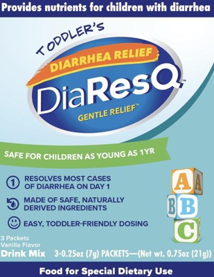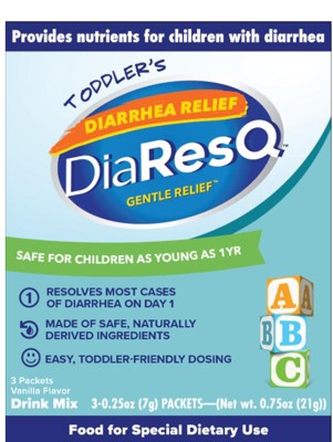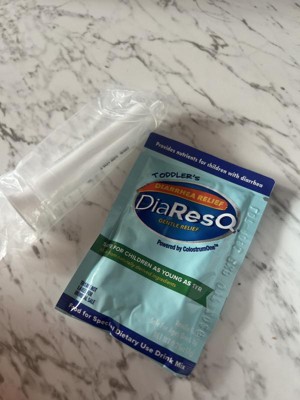While this product seems great for helping toddler's with diarrhea, it's rather cumbersome to mix up. It involves pouring the powder packet into the provided cup, adding water, placing the provided lid on the cup, shaking & then using the provided syringe to measure the dose. On another note, my daughter will not drink anything but water & when it comes to medicine, she's okay with bubblegum flavored meds. DiaResQ is "vanilla" flavored & I could not get her to ingest it. Note that it also contains dairy & egg.