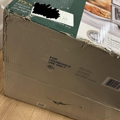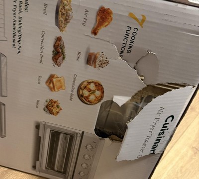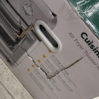 Box was damaged as is the Air Fryer, top of oven has a huge dent in it, not very happy about that, now I need to bring it to store, inconvenience, driver should have noticed damaged box… I would still recommend the product, it is great!!!