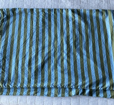 Nice design, good fit & soft once it’s been washed. Comes with a fitted sheet, flat sheet and a standard pillowcase (shark not included). I like the bold stripes in olive & blue. Can be gender neutral!