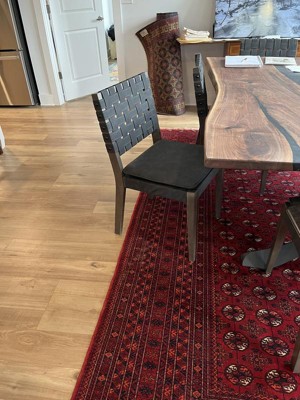 Introducing the Cohen dining chair, a stunning blend of style and comfort for your dining area. With a comfortably low 19inches seat height, this upholstered dining chair is thoughtfully designed to make your dining experience extraordinary. It features a comfortably padded saddle seat upholstered with high quality faux leather. The legs are made from solid rubberwood in natural finish, making each piece truly unique. And the star of the show, Cohen's hand-woven faux leather backrest, not only adds a touch of artisanal beauty but also provides excellent comfort.