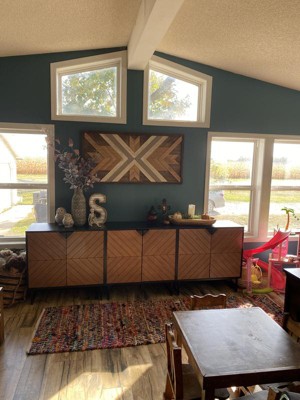 Beautiful modern console. Love the storage and I can hide my grandsons toys and books🙂