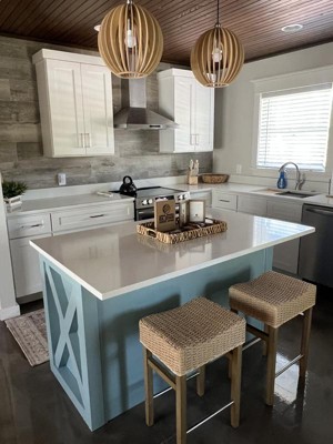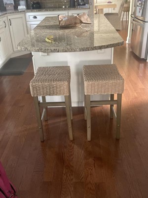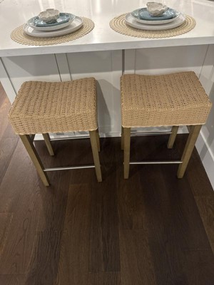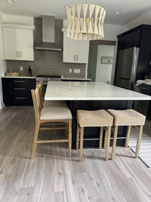 These stools are high quality, easy to construct, and are very comfortable. They nest nicely under the island countertop and are a beautiful neutral color.