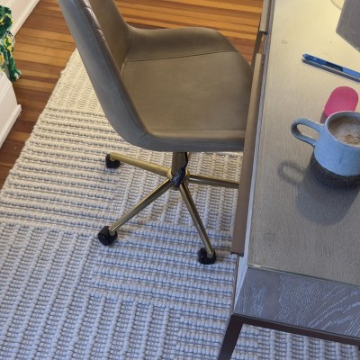 [This review was collected as part of a promotion.] Love this rug, especially for the price. It’s a bit nubbier than I was expecting, so it might be challenging to keep clean. It also has a smell to it, that seems to come with changes in humidity. I’m guessing it’s the wool, and hope that it lessens over time.