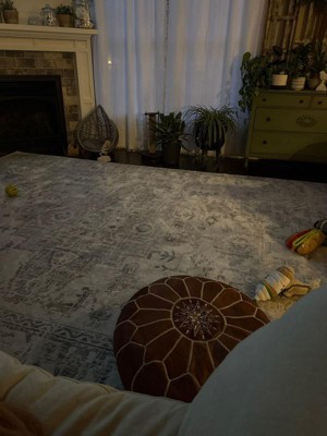 [This review was collected as part of a promotion.] Love the print and colors but it can be very light if you want the gray to stand out more.From the side view in daylight it almost looks all white. Keeping it in hopes that I get use to a light rug vs my old dark rug. Time for a change : )