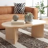 Upgrade your home with the refined elegance and grace of our Tayson coffee table. The sculptural silhouette of the coffee table stands out with a capsule-shaped tabletop. Its bold curves contrast with a sharp and angular V-shaped base. The striking geometry of our coffee table is balanced with rich grains of wood with a nautral finish. Our coffee table anchors any room with its sleek style and elegance.