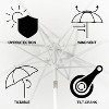 • Preserve your outdoor umbrella by ensuring the umbrella is completely dry before closing and storing it. If it gets wet, open it up to dry to prevent mold and mildew growth. Secure the umbrella with the attached strap in strong winds or storms to prevent damage. Your umbrella will continue to provide optimal shade and style with proper care.