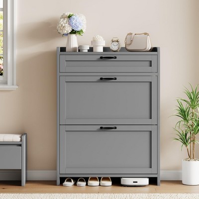 Famapy Gray Entryway Shoe Cabinet With Flipped Drawers