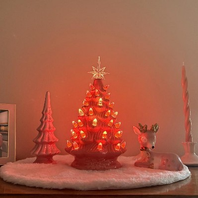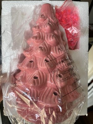 I ordered the pink ceramic tree and the color looks nothing like the website. I thought it would be a nice light pink color, but it's a hideous salmon color. It was supposed to come with clear and light pink bulbs, but I received multi color and hot pink bulbs. I purchased it as a gift for my aunt, but I had to return it. Very disappointing.