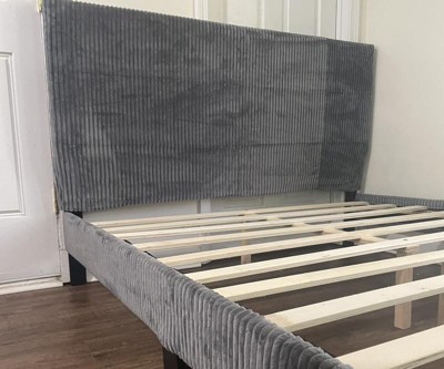 miBasics Beckman Queen Platform Bed Corduroy Upholstered with Removable Cover Dark Gray
