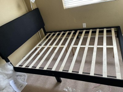 The bed frame came in good shape, easy to install. I love the option that I can tape the cover up so that I can take it down to wash or if I don’t like the color of the cover, the bed-frame came in with black color on the board and the side as default. Love the changes I can make myself. Solid and supportive.