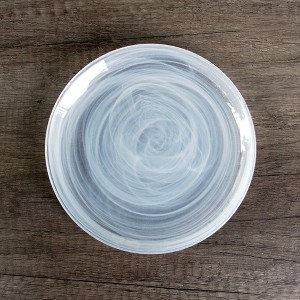 Elevate your dining and event experiences with this handmade centrifuge glass canapé plate, featuring a mesmerizing marbleized swirl finish embedded inside the glass. Each plate is a unique piece of art due to its all-natural production process, making it a striking addition to any table setting. Available in three colors—Ivory, Aqua, and Graphite—this 6.25-inch plate is perfect for adding a sleek touch to your dinner parties, weddings, showers, or party buffets. Whether purchased individually or in sets of two or four, these plates create a beautiful combination when served together, enhancing the visual appeal of your dining experience.