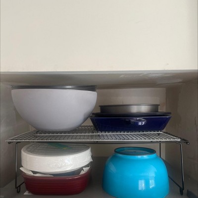 I actually bought this to use as a shelf in our freezer, but it was a tad too wide and didn't fit. Ended up buying a different shelf that is much weaker and annoyingly bows, which causes stuff to fall out. I'm curious how it compares to the ikea one (which they have in a cool looking red color). It is very sturdy and easy to fold and unfold, once you figure out how it works.