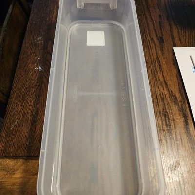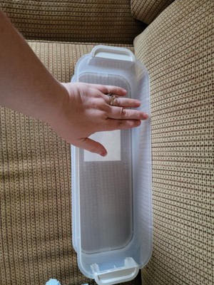 Bring order to closets, study tables, and craft rooms with this 3 Quart Shallow Slim Bin from Brightroom™. Featuring a stackable design for compact spaces, this transparent shallow bin lets you easily see what you've stored inside. Designed in a slim shape, this storage box comes with two side integrated handles for easy carrying around, and it has a capacity of 3 quarts for ample storage.