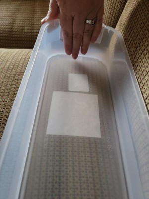 [This review was collected as part of a promotion.] The storage bin is the perfect size to stow away all of my cleaning supplies. I also like the option that the storage bin could be stackable if needed- however I like it open for larger items I need organized and kept together. The bottom portion has a fog like design which is perfect because anything clear would show scuffs and dirt very easily. Overall I am very happy with the design, sturdiness, and size. I received an incentive to write this review.