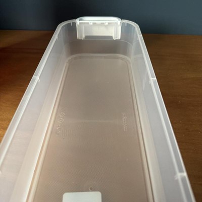 Click in Place 3qt Clear Shallow Slim Plastic Storage Bin with White Latch for Home and Office Organization - Brightroom™