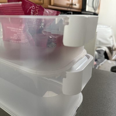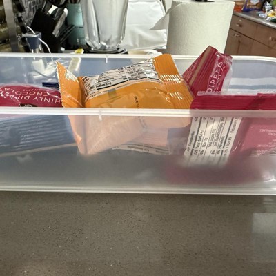 [This review was collected as part of a promotion.] These shallow slim bins from brightroom are awesome! I can fit them in my snack drawer for my kids which makes it so much more organized and easier to manage. I can clearly see when things are running low. It’s easy to clean and they clip into one another if you needed to stack them. The clips click out and then clip closed on the next container making it so they are super secure. I love the quality of these. They are very sturdy. I received an incentive to write this review.