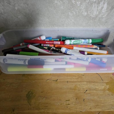 [This review was collected as part of a promotion.] My 6 year old daughter loves art and her art supplies are taking over our house so its nice to find something that actually might help her somewhat organize her stuff and keep it in one place. I thought this 3 quart shallow slim bin from Brightroom would be perfect for markers pencils, and whatever else she draws with to just keep on her little table. Its small enough that it doesn't take up a bunch of room but fits a ton of writing stuff in there. I received an incentive to write this review.