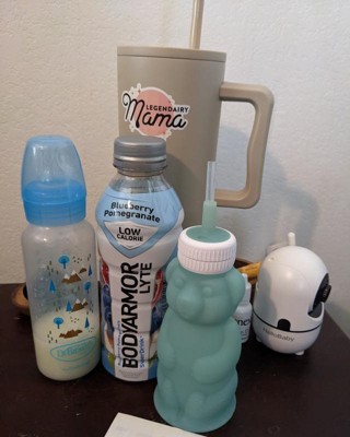 WISH I found this sooner for my firstborn too! BOTH my boys are exclusive nursing babies and never took to bottles or sippy cups so we just went straight for the straws and I love that these Honey bear straw cups makes it so easy. GENTLY squeeze to allow my baby to intake liquids. He loves this, and knows that this is HIS CUP! I LOVE that it comes with two different lengths straws and a brush! He's only 9 months but my goal is to get him fully drinking straw before turning 1!