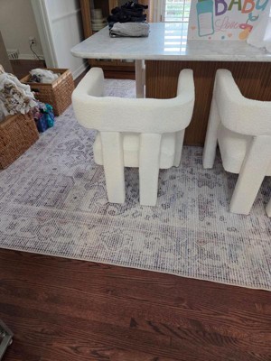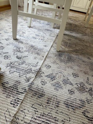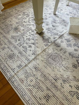 [This review was collected as part of a promotion.] I've had this rug for a year now. Looks as good today as it did the day we got it. It's pet and kid friendly. We have it in the dining room. Some of the gray looks a little purple in our house, which is not something I would normally go for, but I actually really like it.