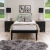 Indulge in the sophisticated elegance of the Powell Pensy 2 Piece Twin Sized Black Bedroom Set, meticulously designed to transform your space into a haven of style and comfort. This exquisite set includes a twin-sized platform bed and a 2-drawer nightstand, each adorned in a sleek black finish that radiates timeless charm. The mysterious black hue seamlessly integrates with various decor styles, making it a versatile addition to any bedroom. Crafted from solid pine, every piece in this set promises durability and sturdiness, ensuring it stands the test of time. Treated with a UV varnish top coat, the finish is not only preserved but also shines brilliantly for years to come, adding a touch of lasting allure to your bedroom.