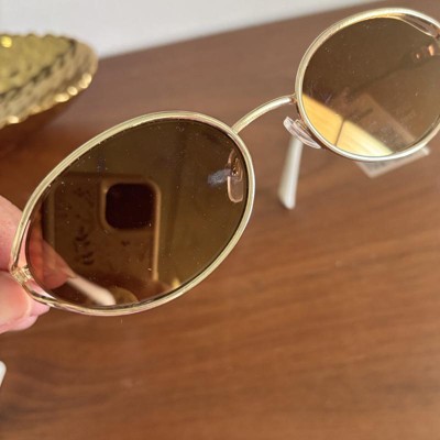 Women's Oval Open Frame Metal Sunglasses - A New Day™ Gold: Medium Fit, UV Protection, Recycled Metal Frame - 1 of 2