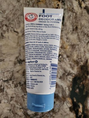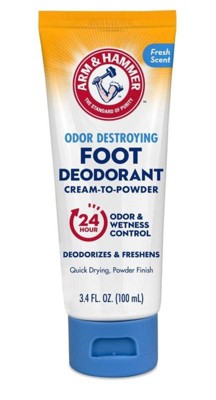Arm & Hammer Cream-to-Powder foot deodorant works great for my son who has to work in the boots. Great non sticky formula . It’s giving comfort providing protection from the wetness and discomfort caused by sweaty feet.. Providing protection from the wetness and discomfort caused by sweaty feet. Highly recommend.