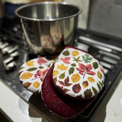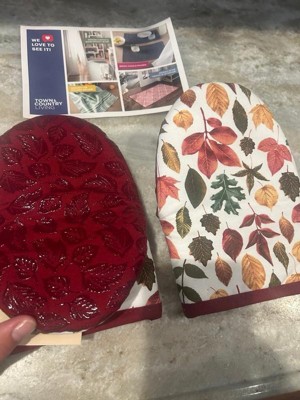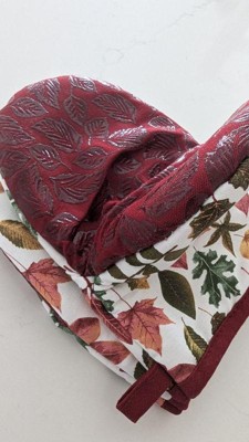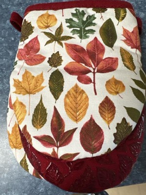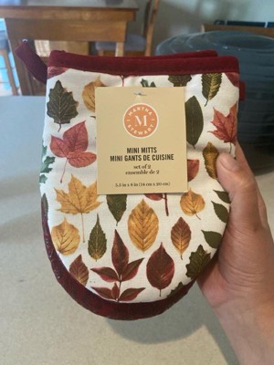 Martha Stewart 2pk 5.5''x8'' Autumn Harvest Falling Leaves Mini Oven Mitt Set Red/Green: Cotton, Silicone, Machine Washable