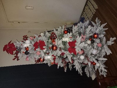 This tree was easy to assemble and the branches fluffed out perfectly, it looks like a real tree! The flocked snow was a little a little bit of a mess the first time or two moving it around but that’s to be expected. Haven’t had an issue with the flocking since.