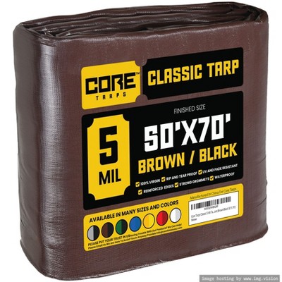 Core Tarps 600'' X 840'' Heavy Duty 20 Mil Tarp Cover, UV Resistant, Rip Proof, Brown / Black, Poly Tarpaulin, for Roof, Camping, Patio, Pool, Boat