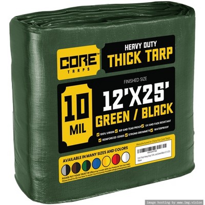 Core Tarps 144'' X 300'' Heavy Duty 20 Mil Tarp Cover, UV Resistant, Rip Proof, Green / Black, Poly Tarpaulin, for Roof, Camping, Patio, Pool, Boat