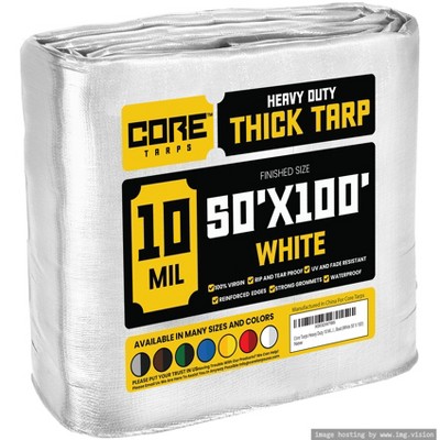 Core Tarps 600'' X 1200'' Heavy Duty 20 Mil Tarp Cover, UV Resistant, Rip Proof, White, Poly Tarpaulin, for Roof, Camping, Patio, Pool, Boat