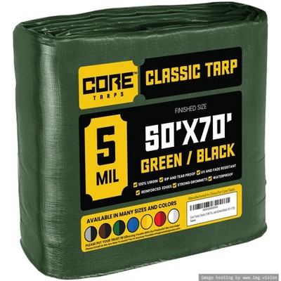Core Tarps 600'' X 840'' Heavy Duty 10 Mil Tarp Cover, UV Resistant, Rip Proof, Green / Black, Poly Tarpaulin, for Roof, Camping, Patio, Pool, Boat