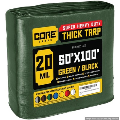 Product Name: Tarpco Safety 600'' X 1200'' Heavy Duty 7 Mil Tarp Cover, UV Resistant, Rip Proof, Green / Black, Poly Tarpaulin, for Roof, Camping, Patio, Pool, Boat