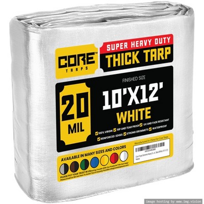 Tarpco Safety 120'' X 144'' Heavy Duty 7 Mil Tarp Cover, UV Resistant, Rip Proof, White, Poly Tarpaulin, for Roof, Camping, Patio, Pool, Boat