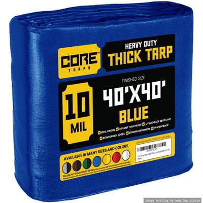 Tarpco Safety 480'' X 480'' Heavy Duty 7 Mil Tarp Cover, UV Resistant, Rip Proof, Blue, Poly Tarpaulin, for Roof, Camping, Patio, Pool, Boat