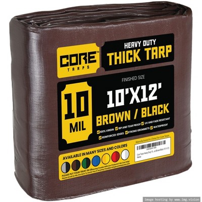 Core Tarps 120'' X 144'' Heavy Duty 5 Mil Tarp Cover, UV Resistant, Rip Proof, Brown / Black, Poly Tarpaulin, for Roof, Outdooor, Patio, Pool, Boat