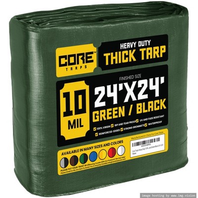 Core Tarps 288'' X 288'' Heavy Duty 5 Mil Tarp Cover, UV Resistant, Rip Proof, Green / Black, Poly Tarpaulin, for Roof, Outdooor, Patio, Pool, Boat
