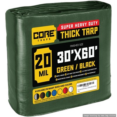 Core Tarps 360'' X 720'' Heavy Duty 5 Mil Tarp Cover, UV Resistant, Rip Proof, Green / Black, Poly Tarpaulin, for Roof, Outdooor, Patio, Pool, Boat