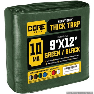 Core Tarps 108'' X 144'' Heavy Duty 5 Mil Tarp Cover, UV Resistant, Rip Proof, Green / Black, Poly Tarpaulin, for Roof, Camping, Patio, Pool, Boat
