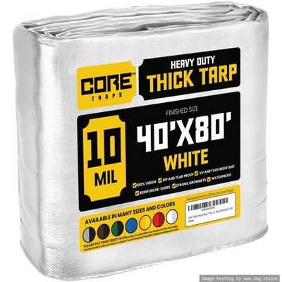 Core Tarps 480'' X 960'' Heavy Duty 5 Mil Tarp Cover, UV Resistant, Rip Proof, White, Poly Tarpaulin, for Roof, Outdooor, Patio, Pool, Boat