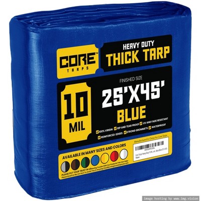 Core Tarps 300'' X 540'' Heavy Duty 5 Mil Tarp Cover, UV Resistant, Rip Proof, Blue, Poly Tarpaulin, for Roof, Outdooor, Patio, Pool, Boat