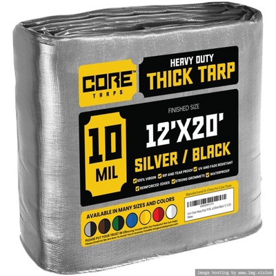 Core Tarps 144'' X 240'' Heavy Duty 5 Mil Tarp Cover, UV Resistant, Rip Proof, Silver / Black, Poly Tarpaulin, for Roof, Outdooor, Patio, Pool, Boat