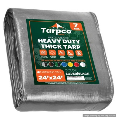 Core Tarps 288'' X 288'' Heavy Duty 5 Mil Tarp Cover, UV Resistant, Rip Proof, Silver / Black, Poly Tarpaulin, for Roof, Outdooor, Patio, Pool, Boat