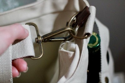 [This review was collected as part of a promotion.] This tote is going to change ny life this summer. I used to carry all my stuff in separate bags when I visit the vineyards in NY; the insulated one for the wine and snacks, the one with the plates, and my purse... it can be chaotic but not anymore. The tote is perfect for two standard bottles of wine, personal items like wallets, make up and assorted items like plates, plastic forks, etc. I was a little weird out by how the straps were positioned on the actual bag but ones I put the bottles inside, it made sense, the placement is thought like that to mantain weight balance while using it. I adore my new wine tote and for sure I'll be buying more items from this amazing SoCal family owned company!