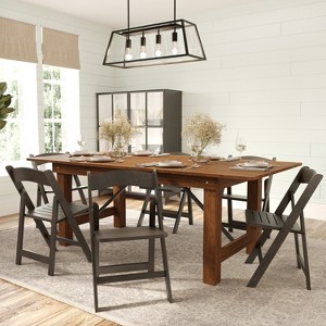 Elegance, comfort, and stability come together to imbue your home with an elevated, rustic appearance with this set of four solid wood dining chairs. Their versatile design is perfect for all occasions, whether you are enjoying your morning coffee, hosting a lively discussion with friends, or want to serve some upscale style while you serve dinner. Luxurious, curved seat backs are crafted to provide long-lasting comfort, great for when the tableside conversation extends deep into the night. Plus, these chairs are as convenient as they are stunning. They easily fold when not in use, allowing you to save space where you need it most or stow them away and transport with ease. Add these chairs to your ensemble with confidence thanks to solid beechwood frames with a hardy mortise and tenon construction that empowers a 300 lbs. static weight capacity per chair. For additional peace of mind, fixed floor glides guard your floor from unsightly marks. For your convenience, your chairs arrive preassembled. Upkeep is quick and easy by wiping clean with a damp cloth. Make a grand impression on your guests and enhance your home’s look with this set of four solid wood foldable dining chairs.