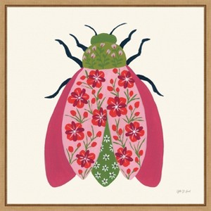 The image features an artistic depiction of a bug with intricately decorated wings. The wings are adorned with vibrant red and pink flowers alongside green foliage, combining elements of nature and whimsy. The design is set against a plain, light background which highlights the detailed artwork of the insect. This canvas art print was created by Yvette St. Amant and printed in Waunakee, WI. It is stretched across a solid surface to resist sagging. We use only premium, high-tension canvas. Our exclusive stretching techniques hide corner folds and provide a taut canvas surface. The artwork is authentically licensed. The canvas appears as if it is floating in the frame because it has a narrow gap between the edge of the canvas and the frame. Our canvas items are individually made using traditional custom framing techniques, it has the quality you would expect from your local frame shop.